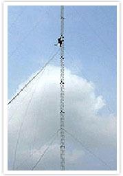 正三角形布置形式以及鋼絞線拉線固定方式,大大降低塔身自重 ;風荷載系數小,基礎形式簡單,占地少(一般0.25m×0.25m),對承重物破壞較小,樓面基礎施工便利 ,可設計多層平臺,承載能力較高,可掛載多副天線和微波傳輸設備;在樓面上施工時,由于樓面周圍維護結構多,拉線固定方便,施工速度大大加快;在山坡上施工時,可利用山坡優勢進行拉線固定,安裝便捷、施工速度快;構件輕、占地少、對承載物的破壞小。