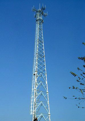 微波塔又稱為微波鐵塔、微波通信鐵塔,多建于地面、樓頂、山頂。微波塔承風能力強,塔架多采用角鋼材料輔以鋼板材料,也可全部采用鋼管材料組成,塔架各構件之間采用 螺栓連接,全部塔架構件在加工完畢后經過熱鍍鋅防腐處理。角鋼鐵塔由塔靴、塔身、避雷塔、避雷針、平臺、爬梯、天線支架、饋線架及避雷引下線等部件組成。