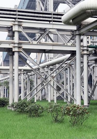 變電架構是變電所、變電站等室外導線、設備的主要支持結構 的統稱。它是根據變電所的電壓等級、規模、設備布置、施工運行條件以及當地的氣候條件來確定的。根據電氣的性質,不同的電壓等級,要求導線之間、導線對地、導線對構筑物要求保持一定的距離,因此變電架構特點是柱高而斷面細小,屬于大柔度結構。